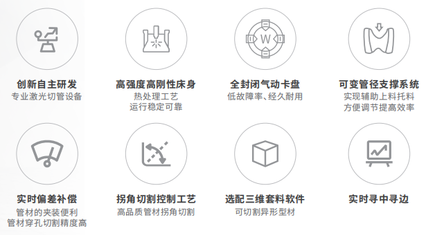1. 專業(yè)管材控制系統(tǒng)支持方管、圓管、橢圓形等拉伸管、角鋼、槽鋼的高精度、高效率切割;